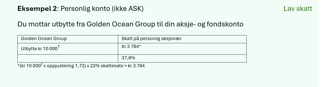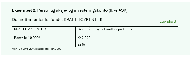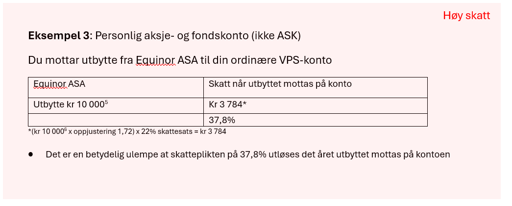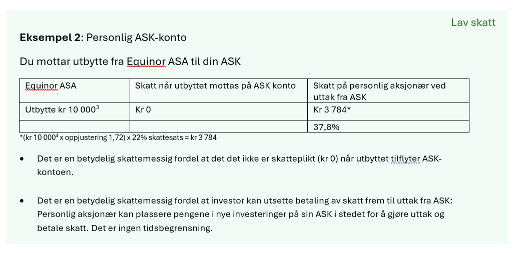 NB: Aksjer utenfor fritaksmetoden kvalifiserer ikke for ASK, så det er ikke eksemplifisert her.